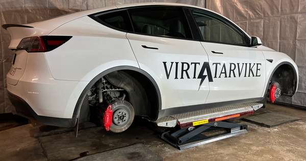 Hos Virtatarvike udfører vi også dækarbejde. Du kan bestille tid til dækskift via kalenderen eller bare komme ind i vores Showroom. Du kan få skiftet dine dæk hos os uden bekymring, da vi har erfaring med elbiler helt tilbage fra 2017. Vi ved, hvordan man håndterer elbiler korrekt med en kran.